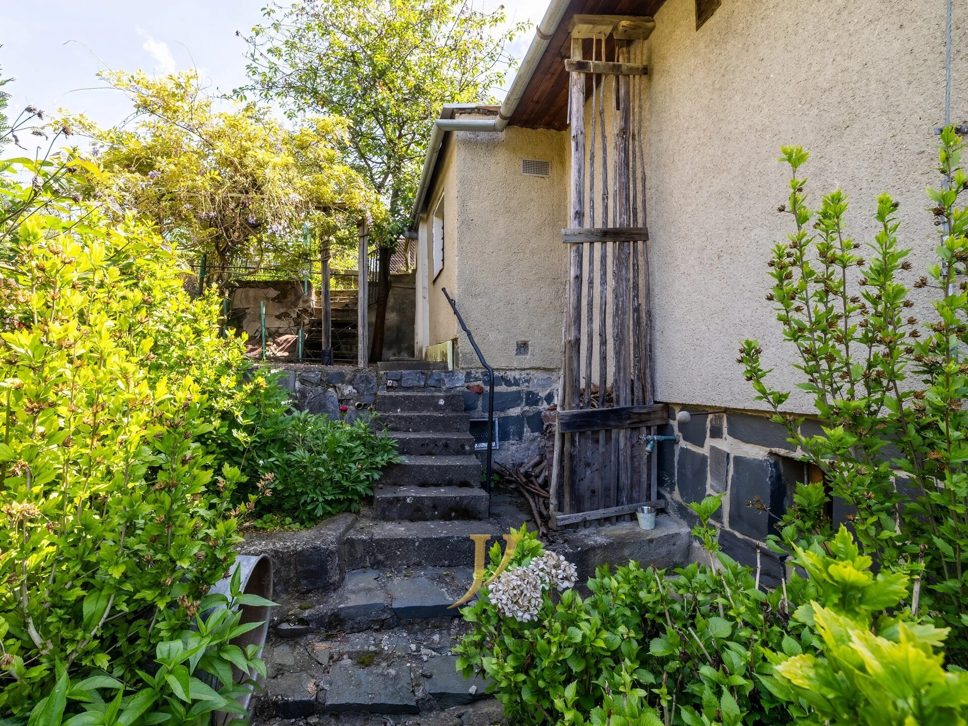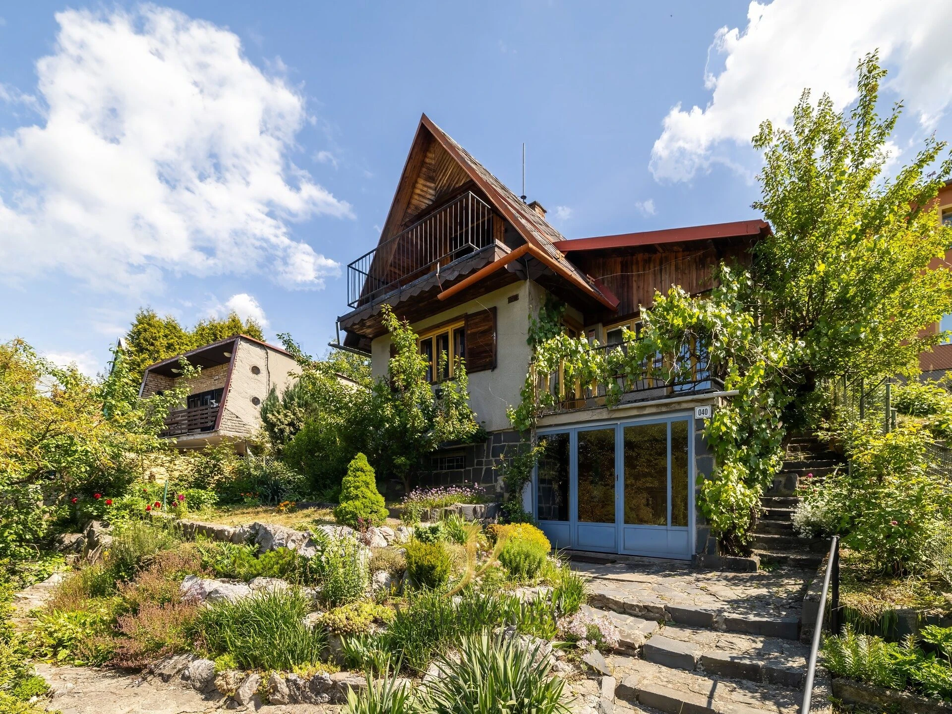 Chata byla postavena kolem roku 1970, konstrukčně je zděná (cihlová), základy tvoří kámen a beton, střecha sedlová s eternitovými šablonami. Okna dřevěná kastlová, vytápění zajišťují plynové přímotopy (WAF) a krbová kamna. Elektroinstalace i rozvody vody jsou původní, funkční. Odpady jsou svedeny do obecní kanalizace. Před chatou se nachází částečně okrasná zahrada s celoročně kvetoucími rostlinami, doplněná o jedlou část – vzrostlé ovocné stromy (např. meruňka, broskvoň, jabloň, švestka) a keře (angrešty, ostružiny, maliny, jahody). Součástí pozemku je také malá retenční nádrž na dešťovou vodu, ideální pro zálivku.