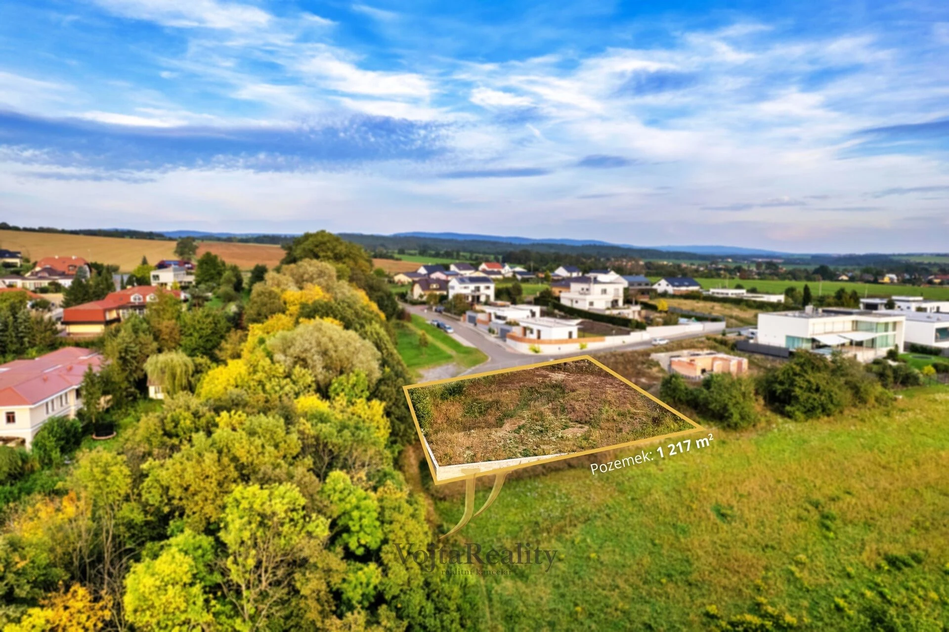 Pozemek nabízí nádherný výhled na Hanou a nachází se přímo nad biokoridorem, kde není možná další výstavba.